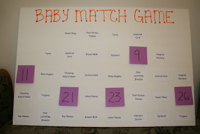 Baby Match Game! (poster board/words printed and glued on/numbered sticky notes over each word)