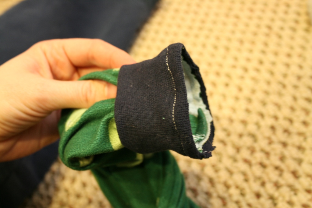 Turning Footy Jammies into Open End Jammies…Here is what the final product will look like…