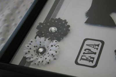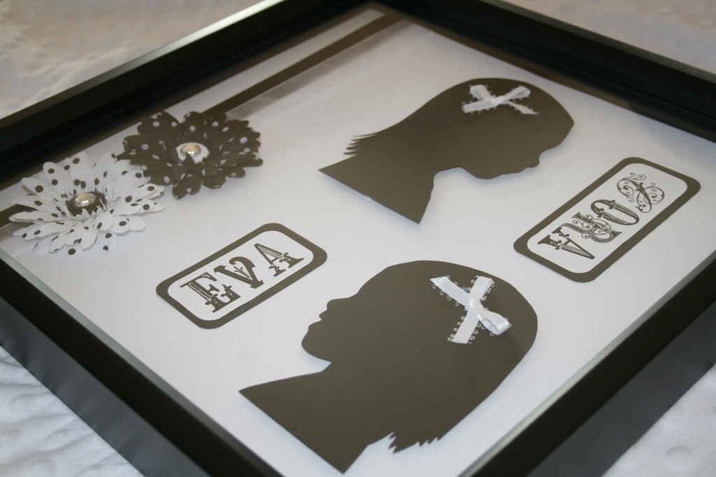 Add Ribbon (glue the ends to the back side) and hot glue flowers buttons, gems on as you like them. I also added a little ribbon bow to the profiles like a bow in their hair.