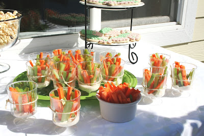 Carrots and celery in ranch (cups from $store) wrapped with twine….see idea HERE