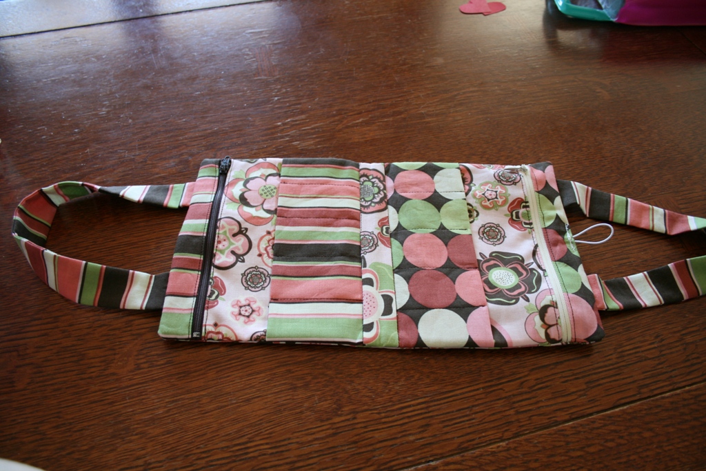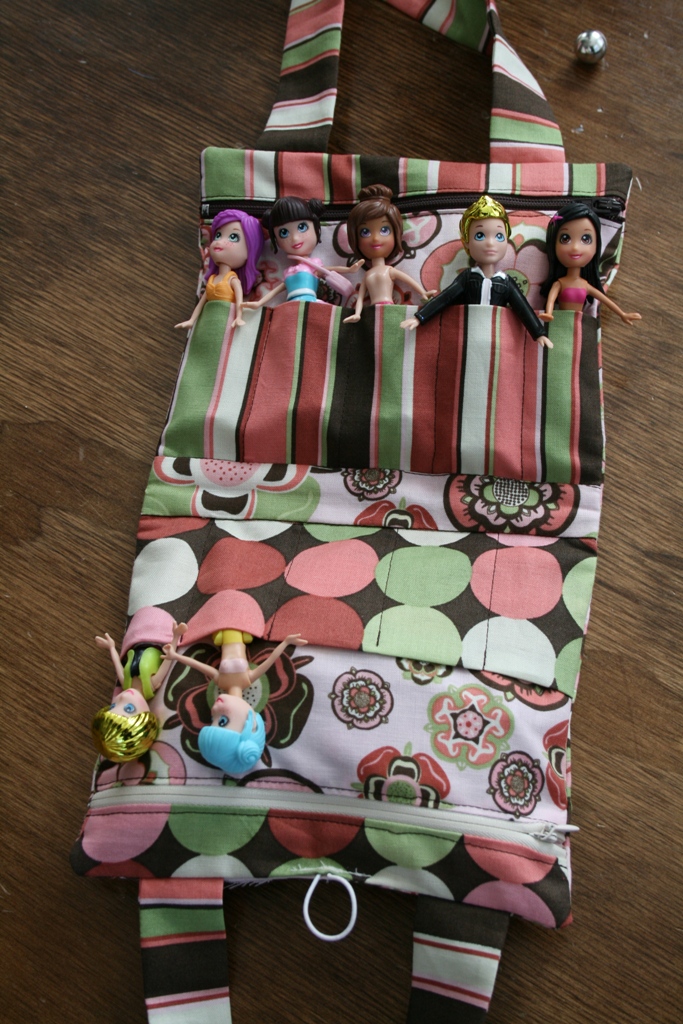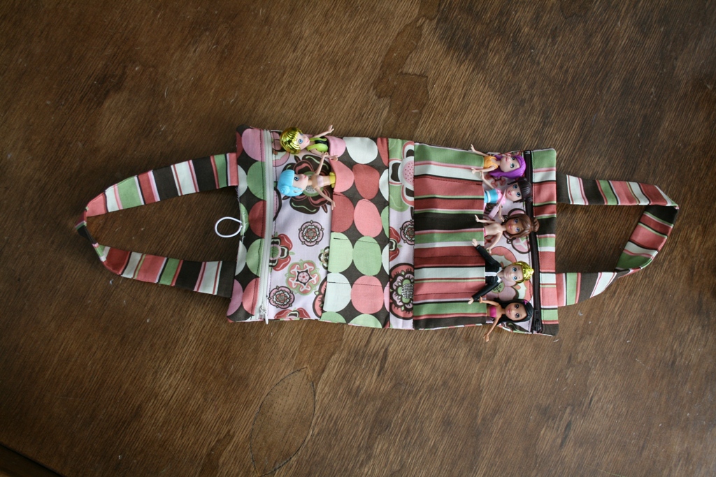 I made this adorable Polly Pocket Carring Case for my niece for her birthday. I followed the Polly Pocket Purse Tutorial found HERE. The only adjustments I made were…I added a little extra fabric to the middle, made polly pocket holders on both sides, and made my straps shorter.