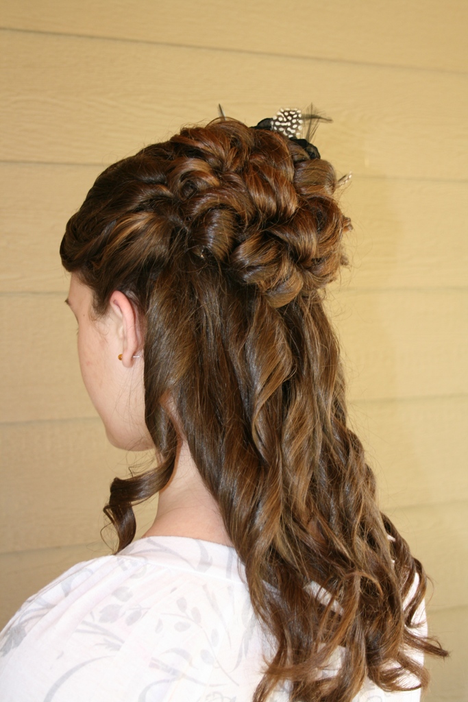 The girl who babysits for me was a bridesmaid in her sister’s wedding this weekend. And I was lucky enough to get to do her hair! It turned out so pretty!! She has the best hair, long and thick, perfect for doing up-dos!!