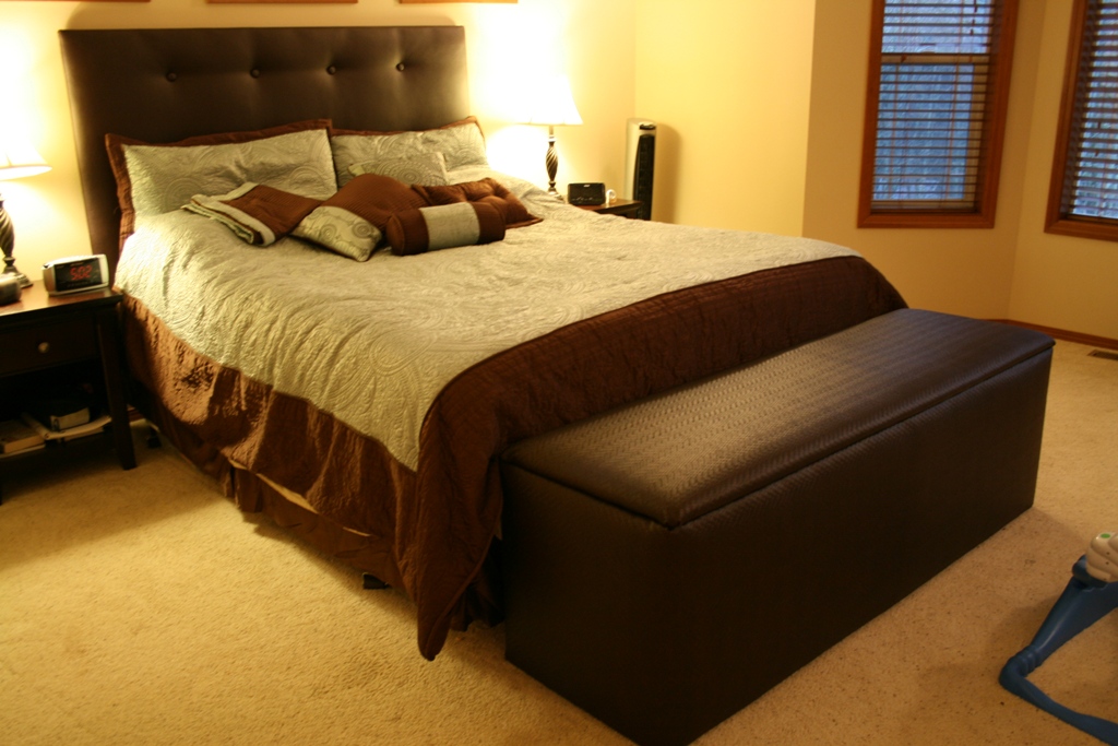 *We have a cal. king bed so this bench is quite large. We searched all the furniture stores and everywhere online trying to find a storage bench to fit at the end of our bed, but they were all too short or didn’t have enough storage space!