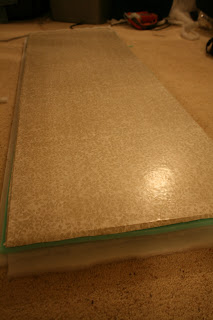*Lay your 2 pieces of batting (cut corners like the above picture to reduce bulk in the corners), foam and then your top board(vinyl side up).