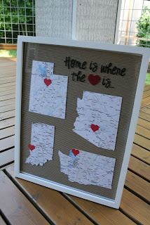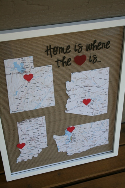 I made this for a sweet friend of mine that is moving away. These are all the places she has lived with her sweet family. This makes a great going away gift or a house warming gift!
