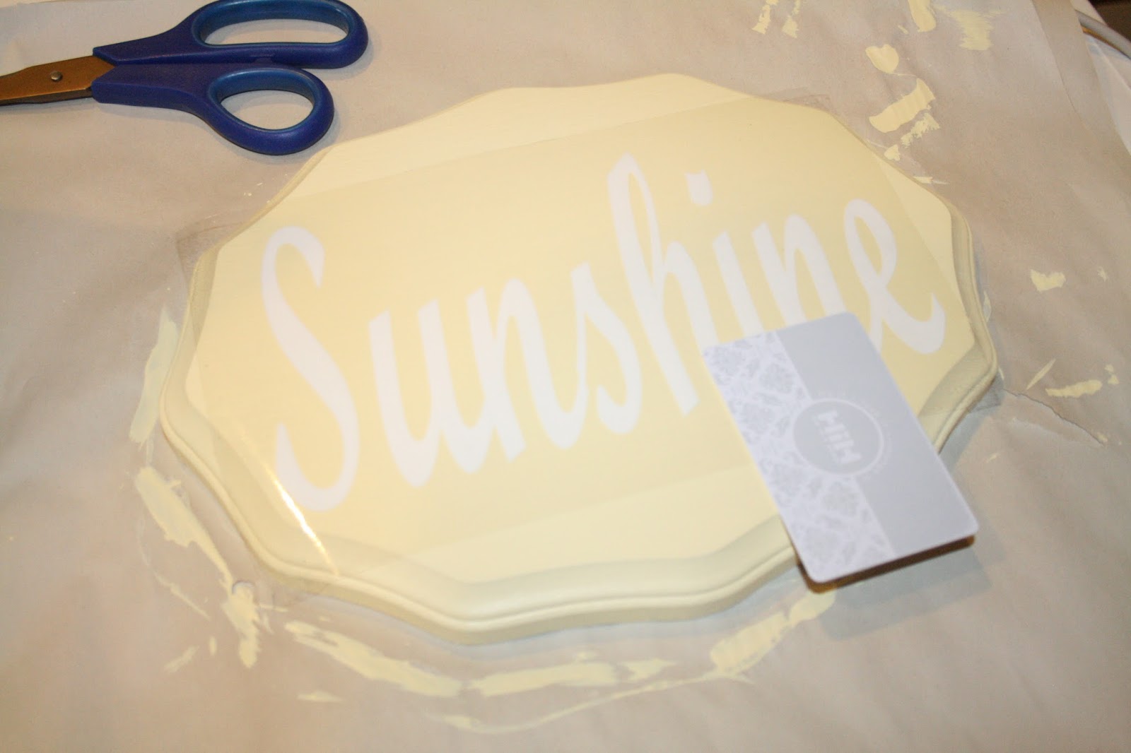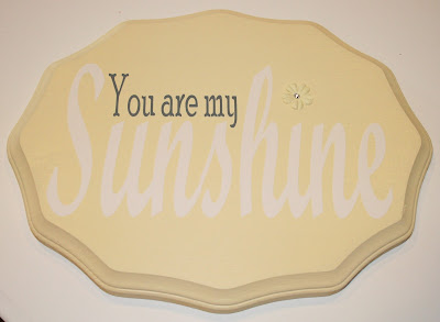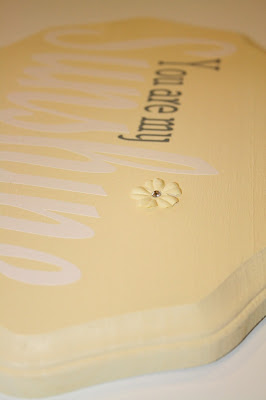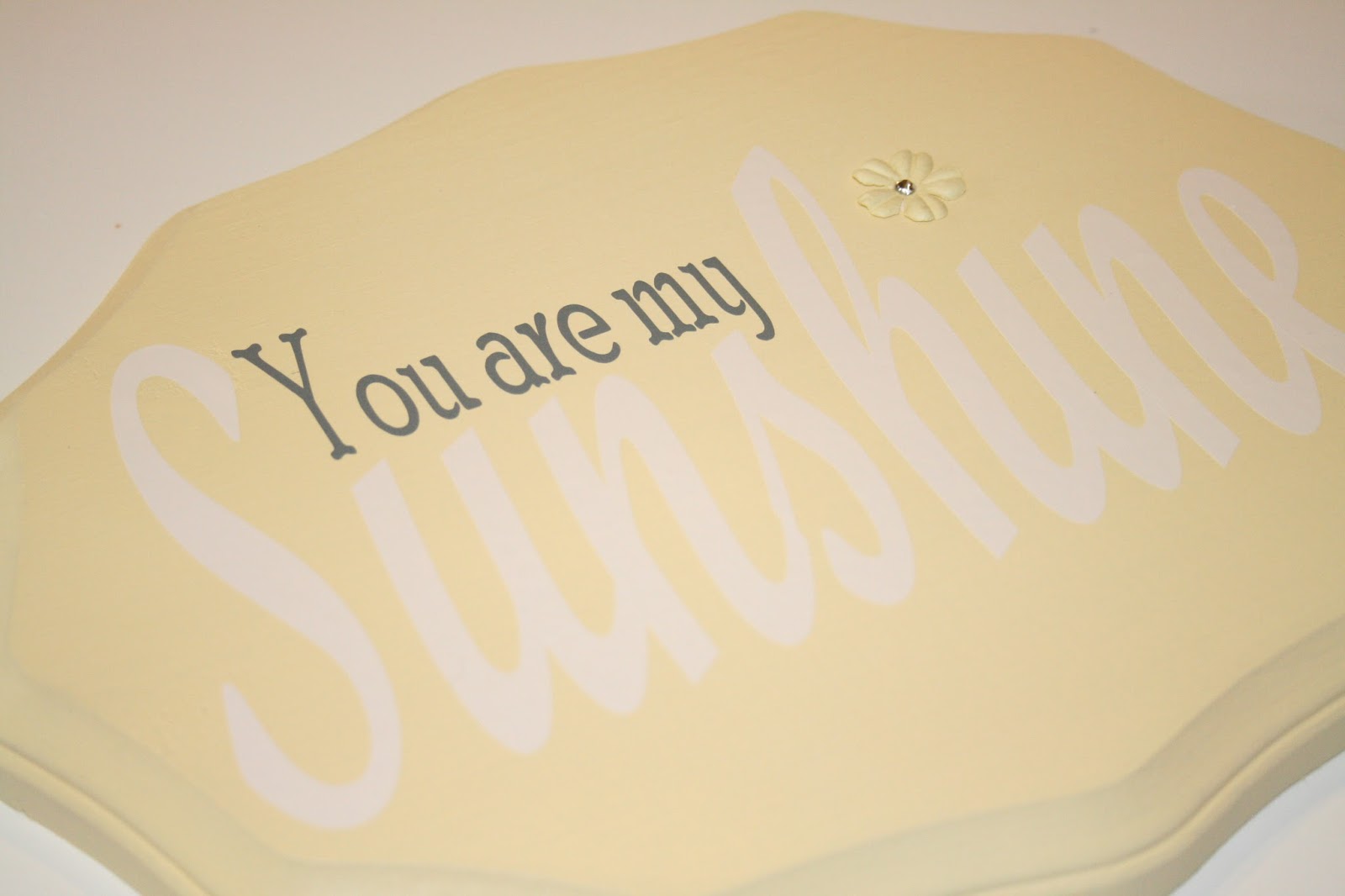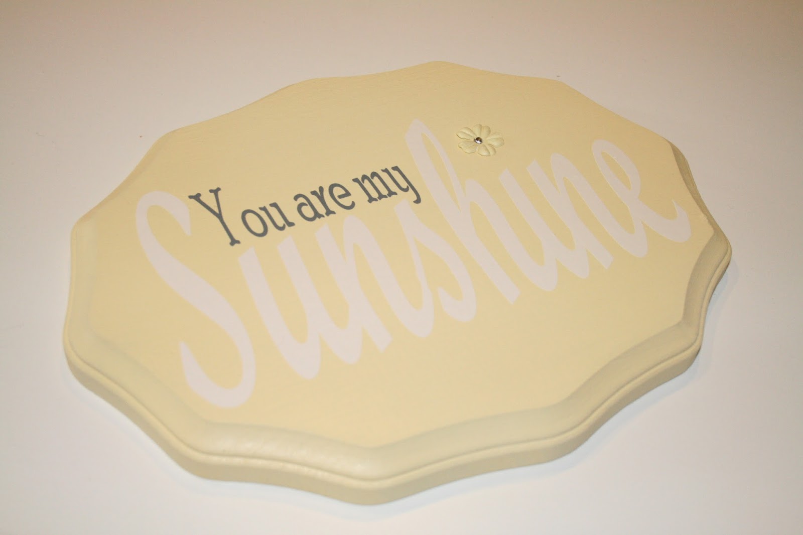 I made this adorable plaque for my best friend’s daughter! If you ever want to find the perfect gift for your friend just check out their pinterest boards! I found lots of cute pins on her board that said “You are my Sunshine” I had this really cute wood plaque from Hobby Lobby in my craft stash. First I painted it a pretty pastel yellow using some craft paint and a foam brush (took 3 coats)….