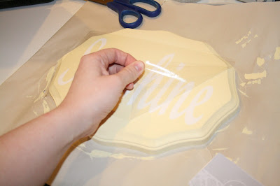 Remove vinyl backing and lay evenly on your sign. use a card to transfer your vinyl.