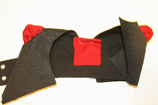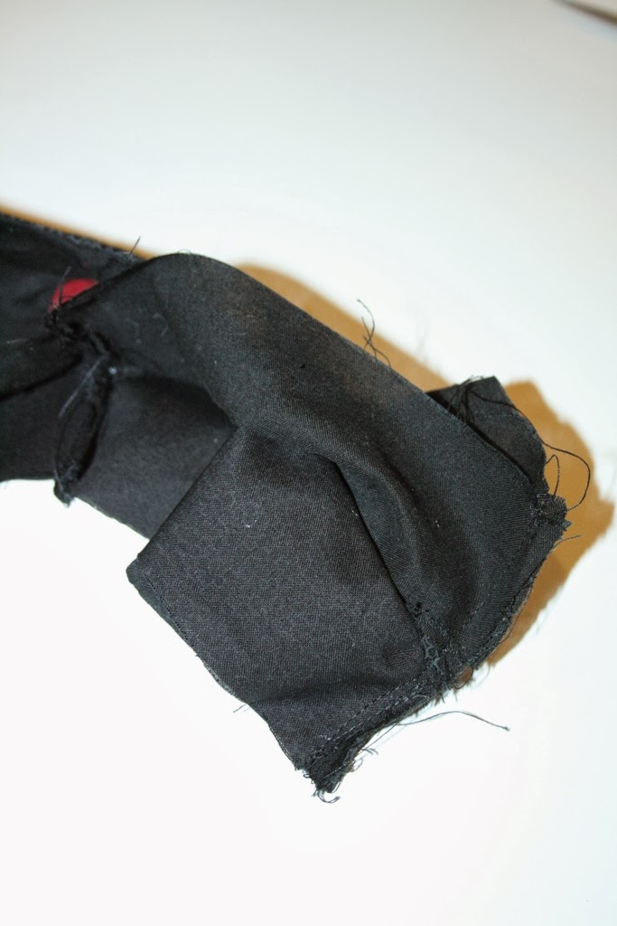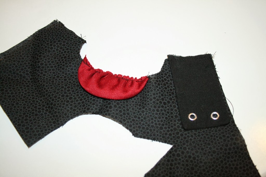 I simply top stitched this piece in place. Then trim any excess fabric on the inside.
