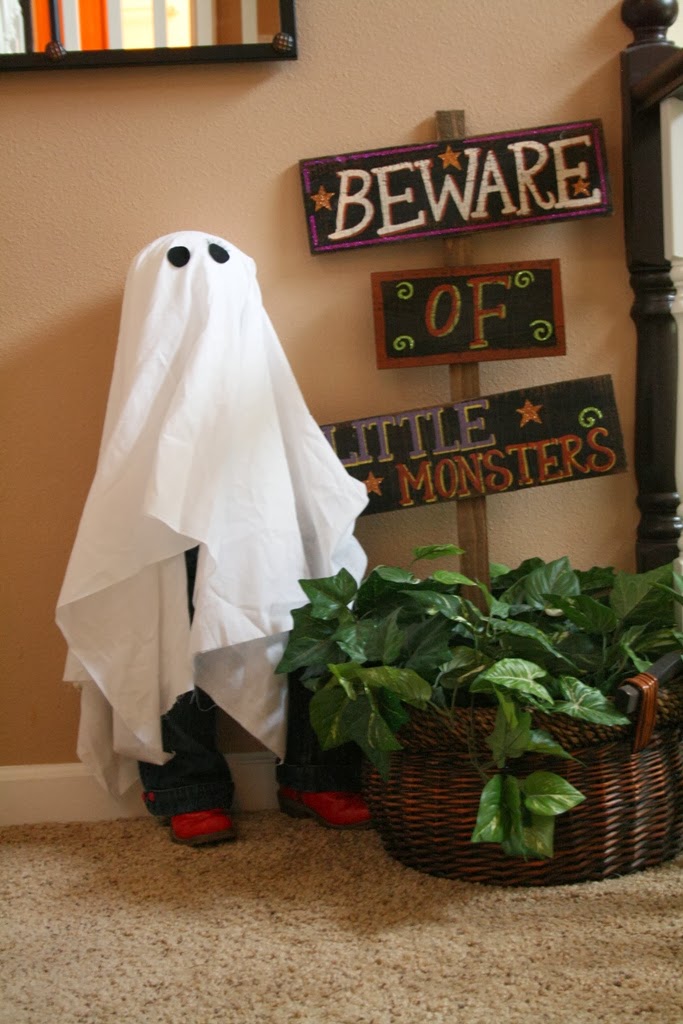 And finally an adorable little child statue made of wood and a foam ball with a white piece of fabric over it and some little circle eyes for decoration! Visit Spoonful to see their tutorial on how to make one yourself!